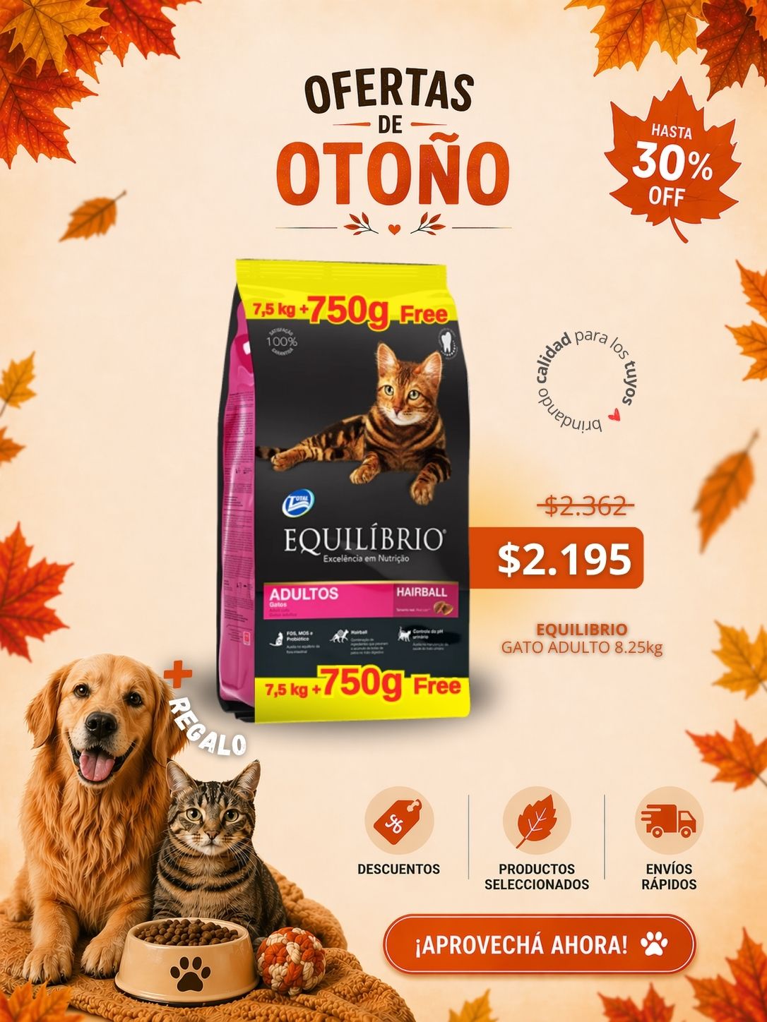 Alimento Equilibrio Para Gatos Adultos 7,5kg + 750g + Regalos